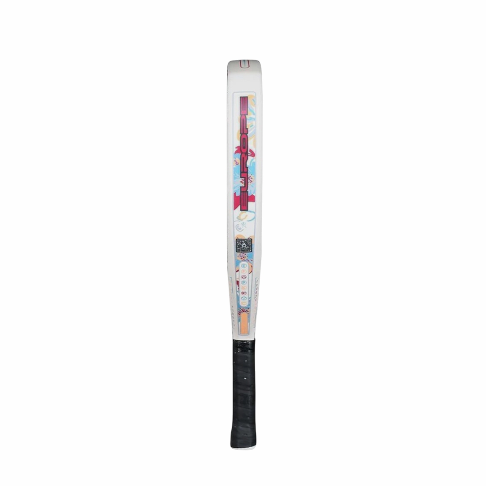 Su núcleo está fabricado con foam de alta calidad, que proporciona una óptima absorción de impactos y una respuesta rápida, permitiéndote jugar con comodidad y efectividad en cada punto. Las caras de multifiber garantizan resistencia y ligereza, asegurando un manejo ágil y duradero en la cancha.
